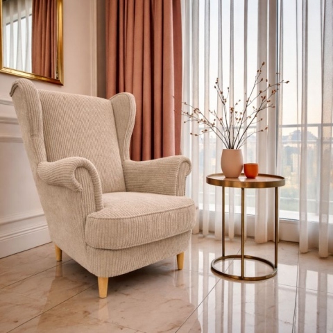 - Кресло с ушками – идеально подходит для уголка для чтения или рядом с камином. Характерное высокое спинкое обеспечит максимальный комфорт.